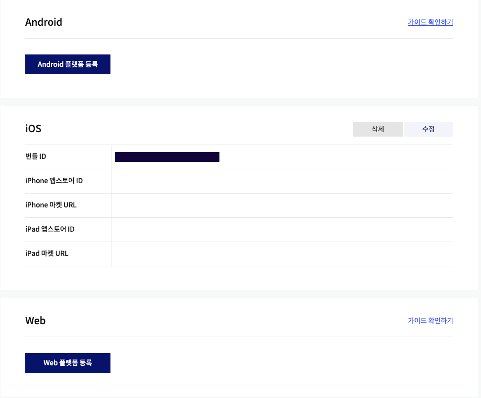 이전 버전에서는 애플리케이션 추가할 때 번들아이디를 넣도록 되어있던데 이번 버전에서는 이 플랫폼으로 분리되었더라구요.