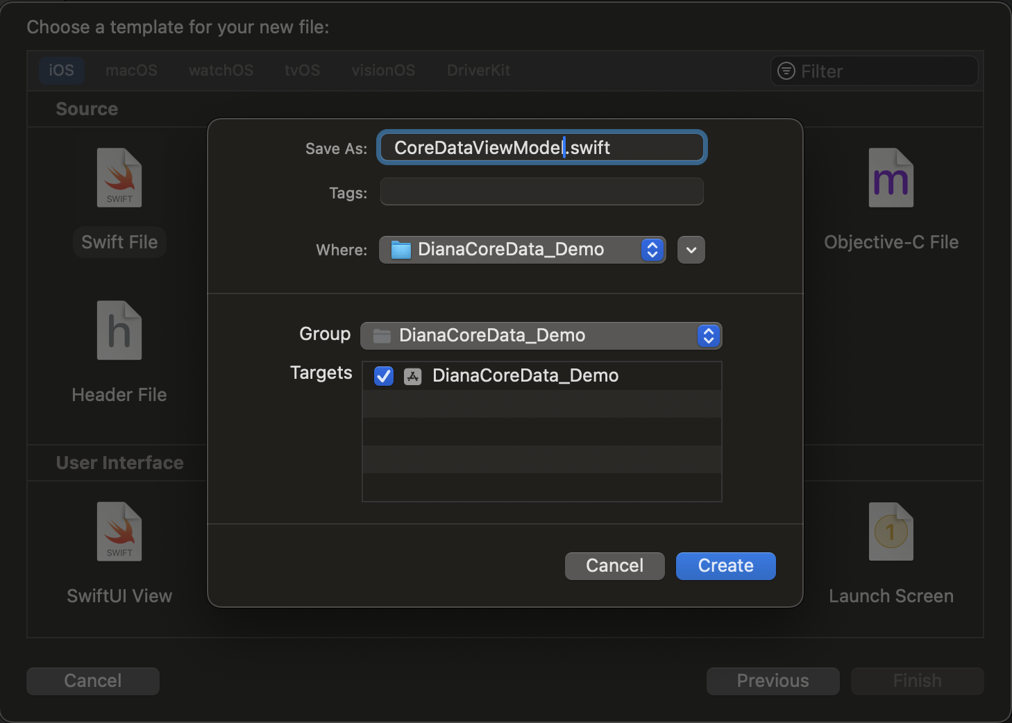 우선 CoreData 관련 작업을 처리해줄 CoreDataViewModel.swift를 생성해줍니다.