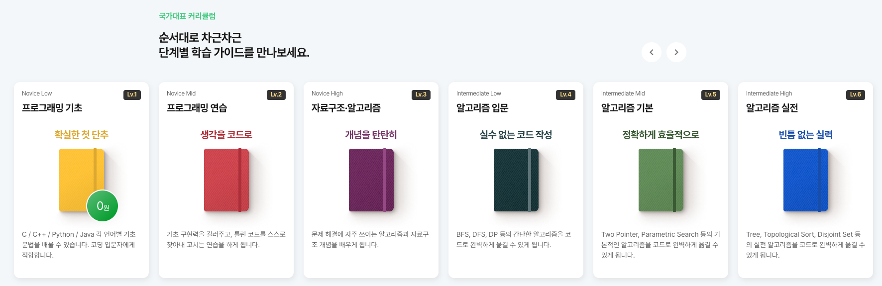 본인의 현재 단계에 따라 기초, 연습, 자료구조/알고리즘 또는 입문, 기본, 실전 등을 선택해서 시작할 수 있고 프로그래밍 기초같은 경우에는 무료로 제공되고 있더라구요!
