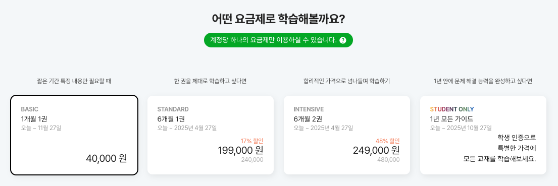 코드트리는 위와 같이 4개의 요금제가 있는데요.