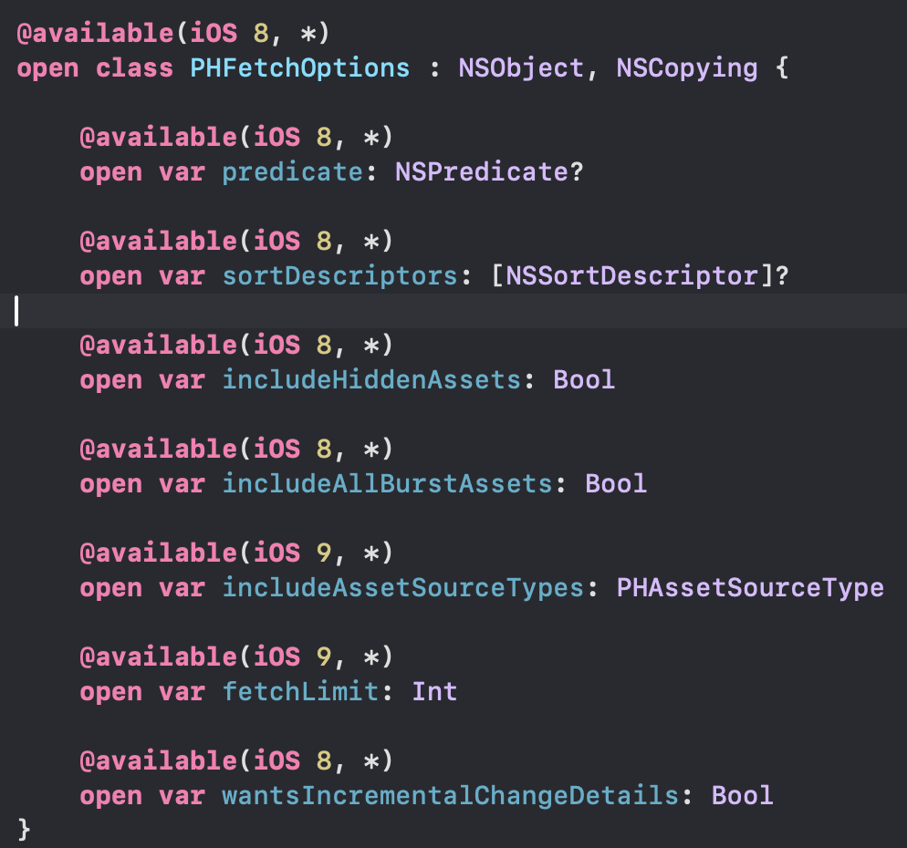 PHFetchOptions에는 아래와 같은 설정들이 있습니다.
